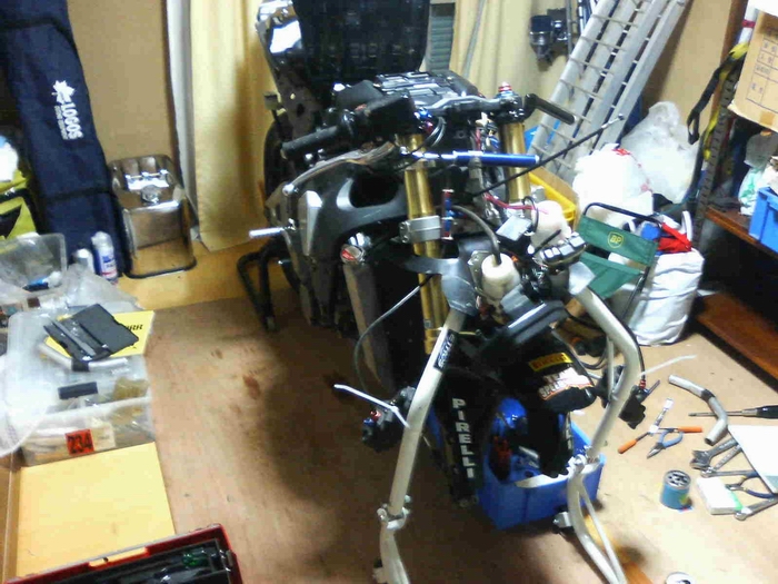 取り合えずマシンをばらして各部を点検、最終コーナーで転んだ