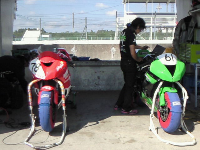 今シーズン、マシーンはカワサキ、タイヤはDL、前サスは純正からオーリンズへ、後サスは純正からエルカへと・・・まあどれも全くと言ってもいい程データが無い!てところからスタートして約半年が経過。始めはこれまともに走れるようになるの?てな感じでしたが、毎走行毎レースごとにセットや乗り方を変え、少しずつですが良い方向へと向かっていきました。とにかくチャタリングとダダダ現象が相乗効果でえらい事になってましたからね(笑)もう本当に病気になるんじゃないか?てくらい悩んで考えて・・・